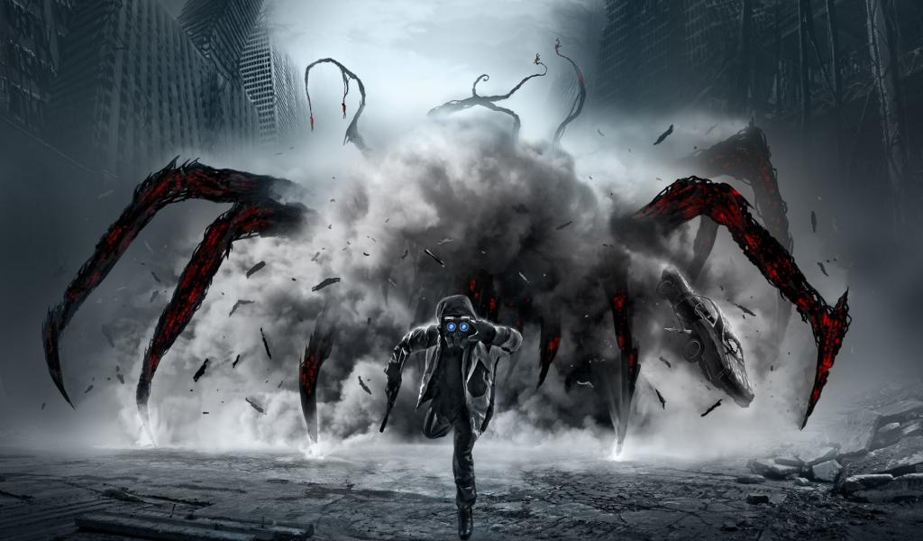 Обои Апокалиптический паук догоняет человека