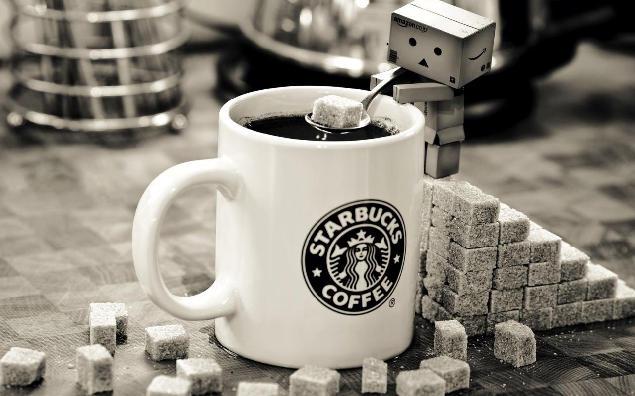 Обои Картонный человечек делает кофе