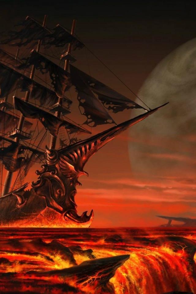 Обои Корабль призрак в огненном море