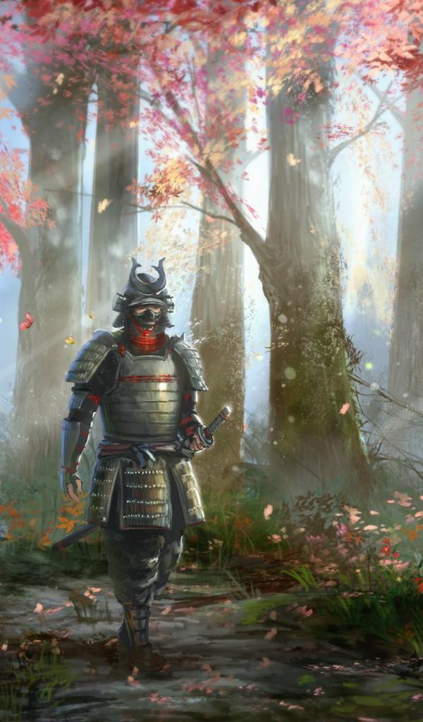 Обои Самурай идет в лесу