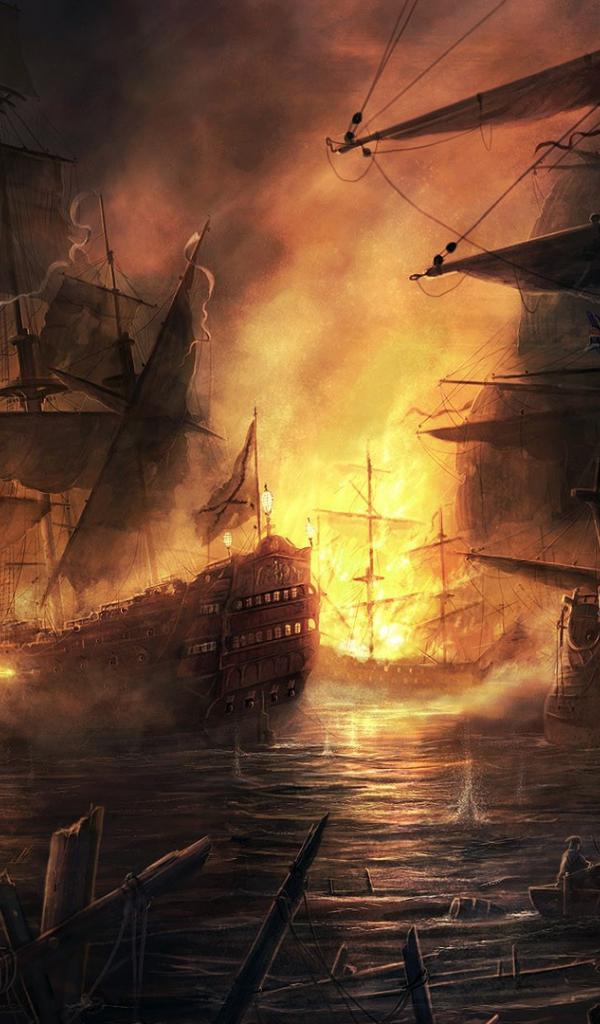 Обои Корабли в дыму и огне