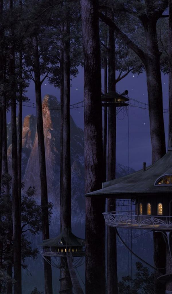 Обои Дома Эльфов на деревьях