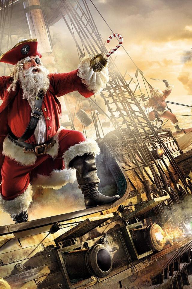 Обои Санта Клаус на пиратском корабле