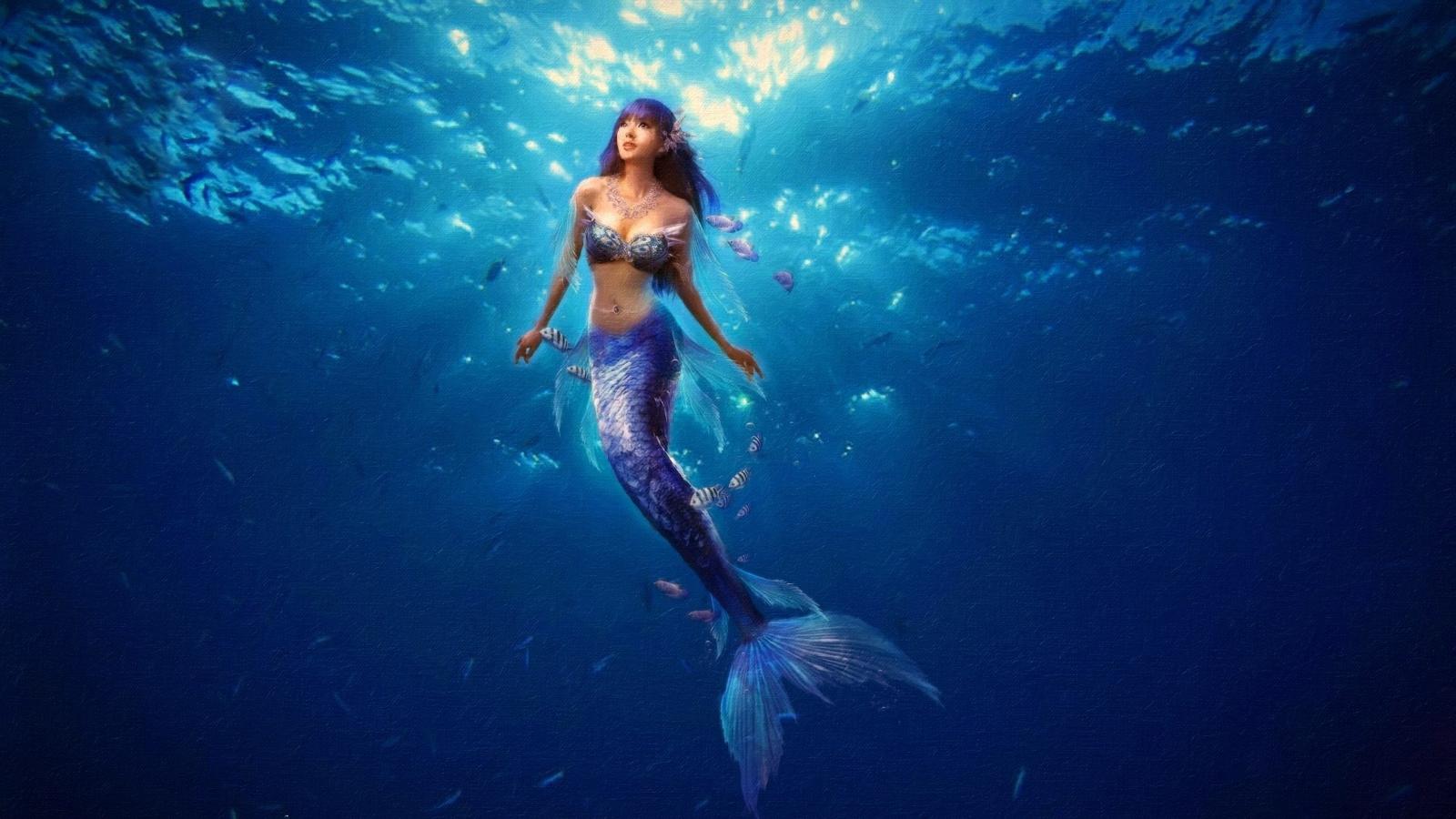 Обои Русалка плывет к поверхности