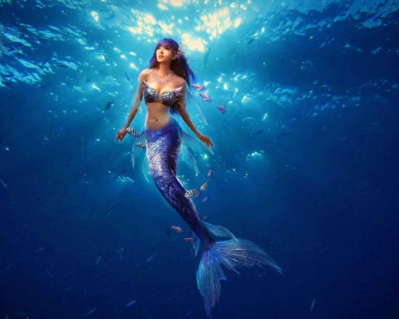 Обои Русалка плывет к поверхности