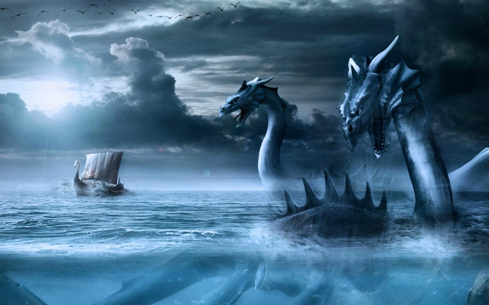 Обои Ящеры охотятся на корабль