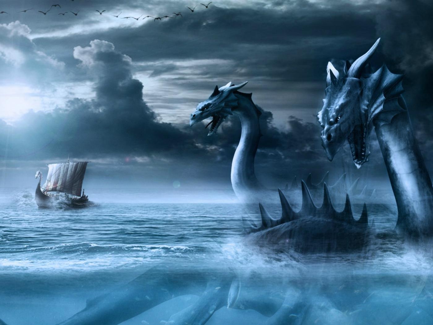 Обои Ящеры охотятся на корабль