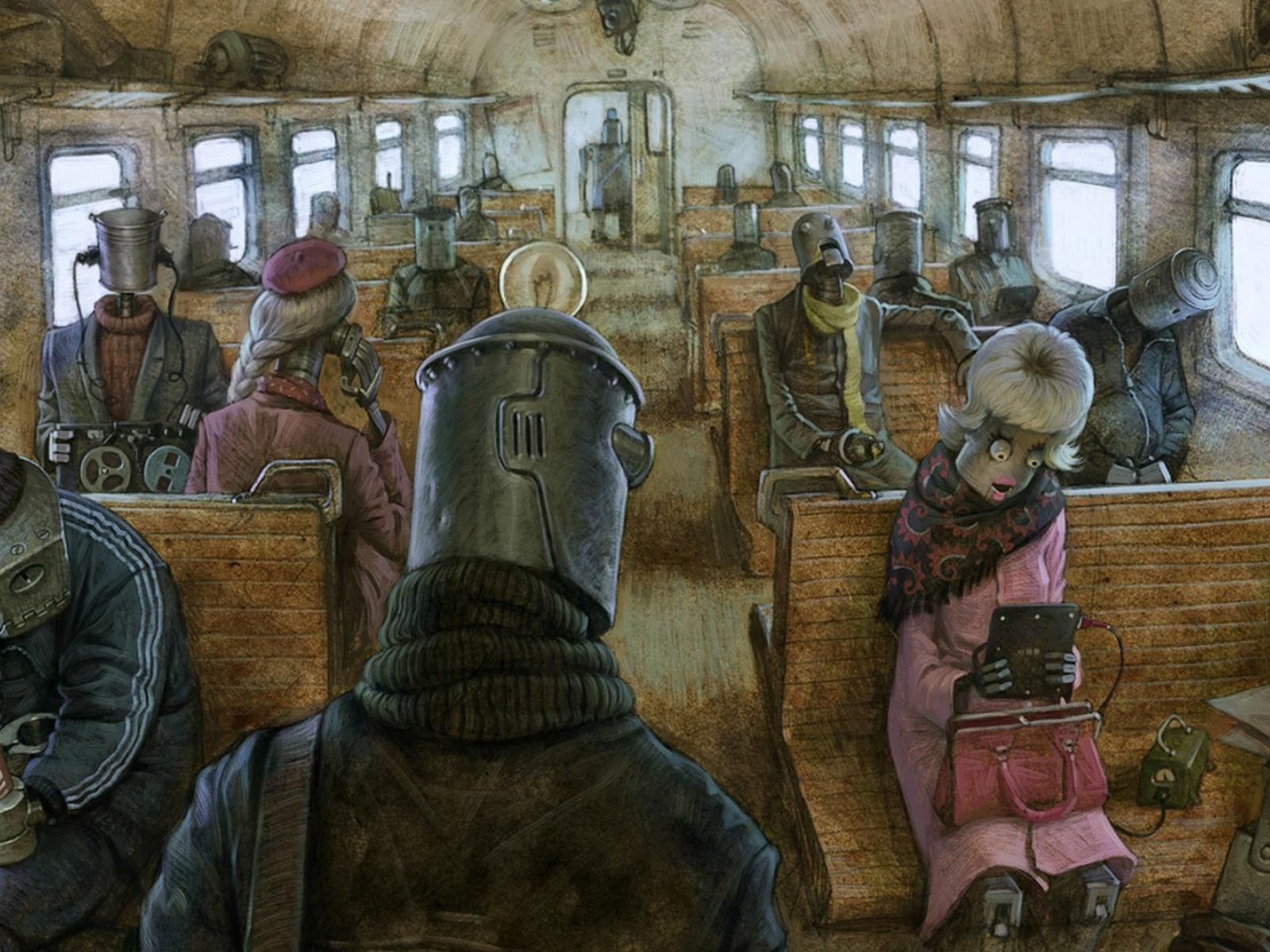 Обои Роботы в пригородном поезде
