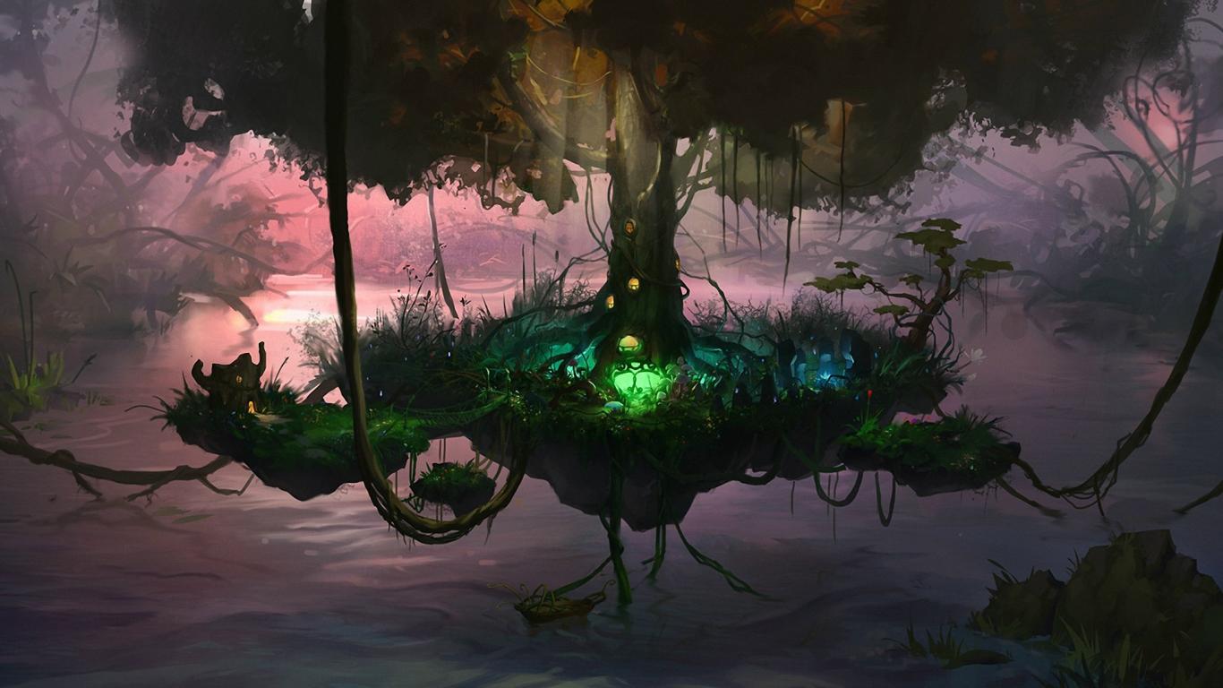 Обои Сказочное летающее дерево