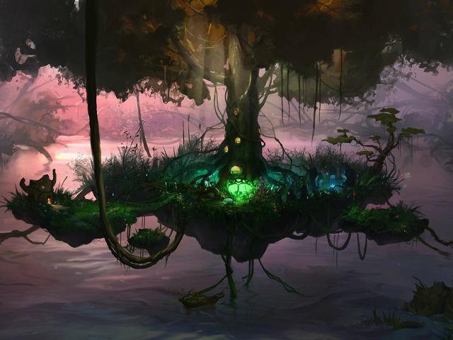 Обои Сказочное летающее дерево