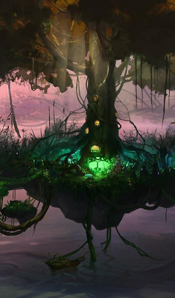 Обои Сказочное летающее дерево
