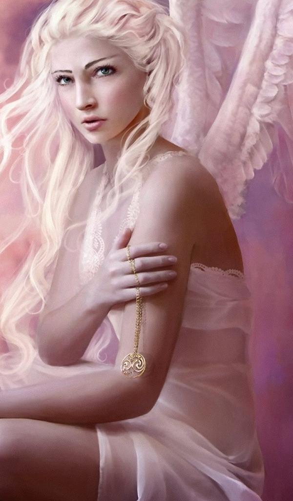Обои Ангел с золотым кулоном
