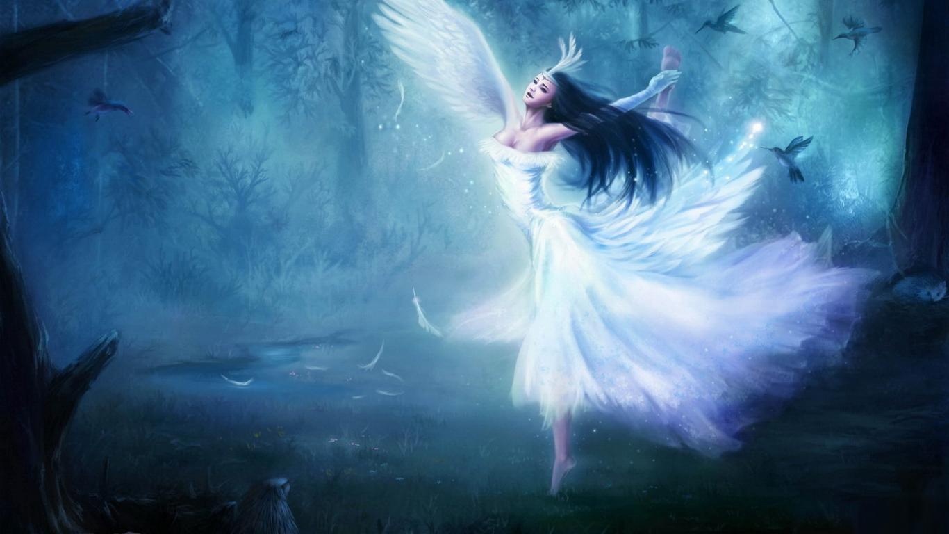 Обои Белый ангел в лесу