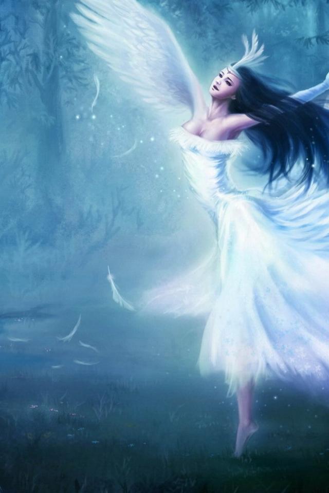 Обои Белый ангел в лесу