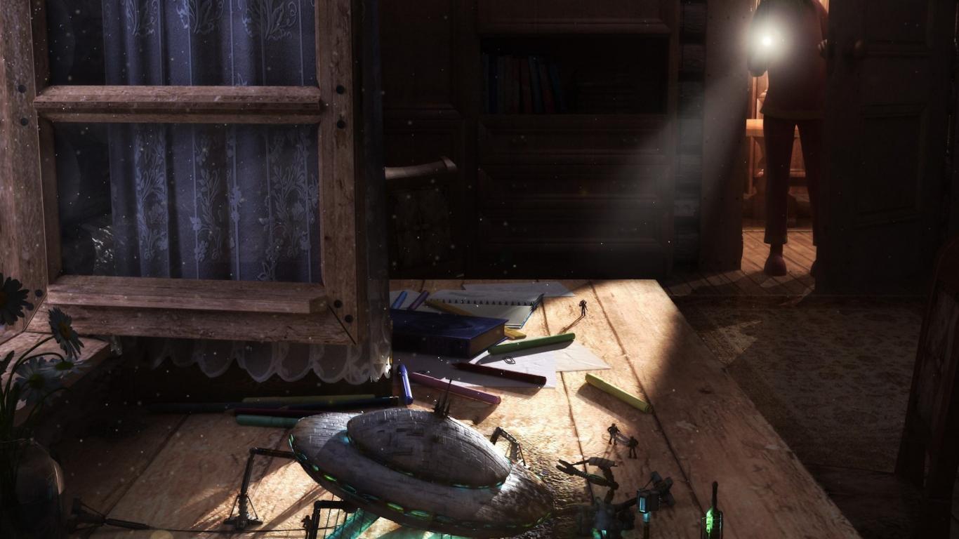 Обои Летающая тарелка на столе