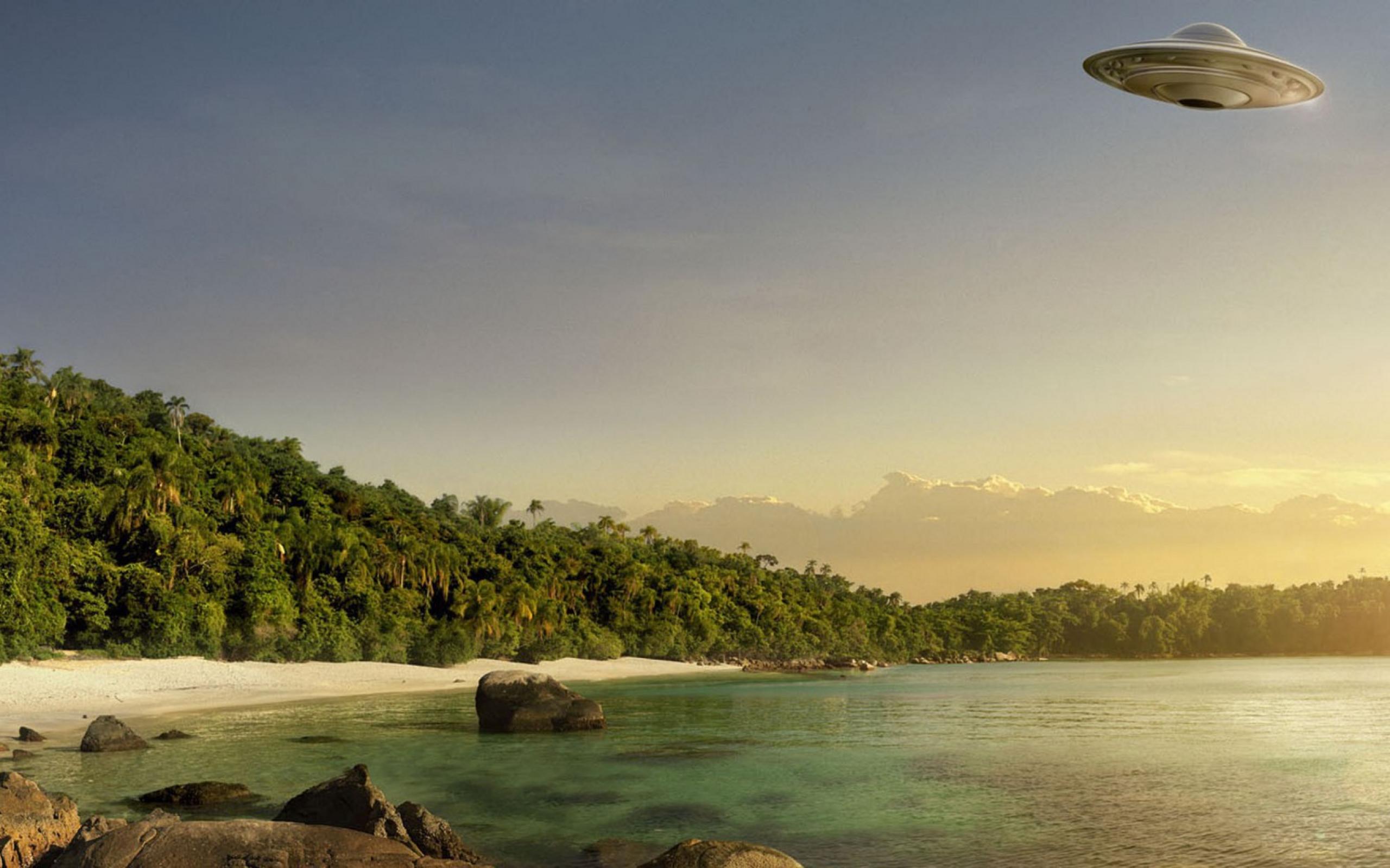Обои Летающая тарелка над пляжем