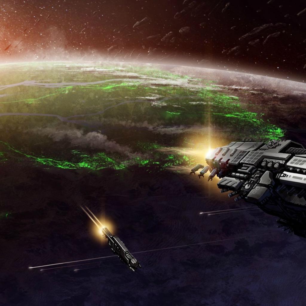 Обои Космические корабли взлетают с планеты