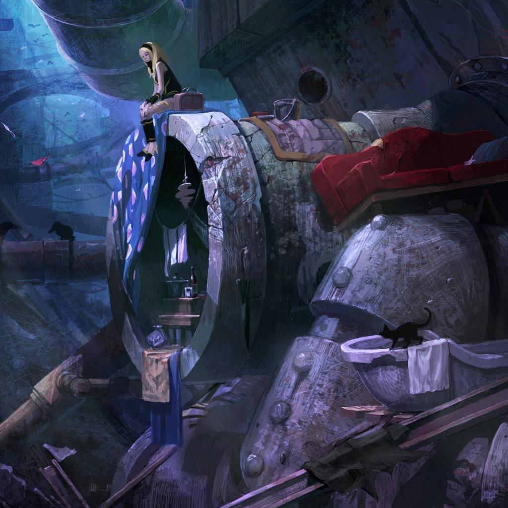 Обои Девушка в железной трубе
