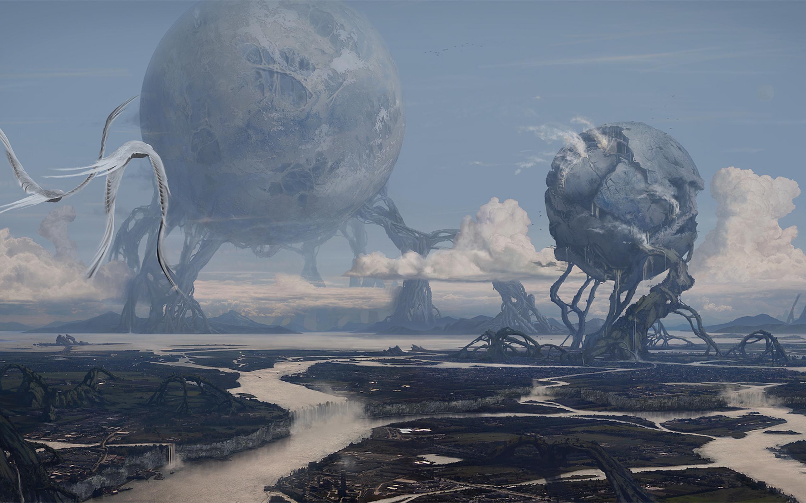 Обои Фантастический пейзаж с шарами