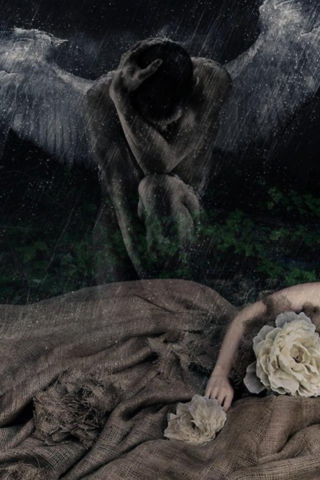Обои Черный ангел над девушкой