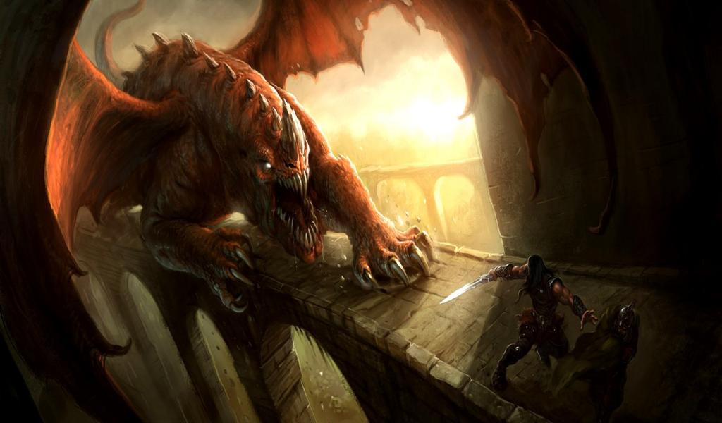 Обои Дракон гонится за воином