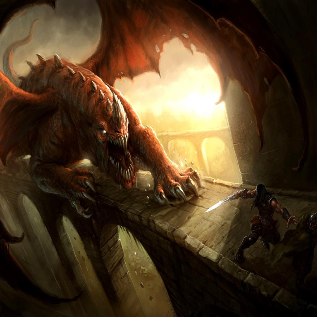 Обои Дракон гонится за воином