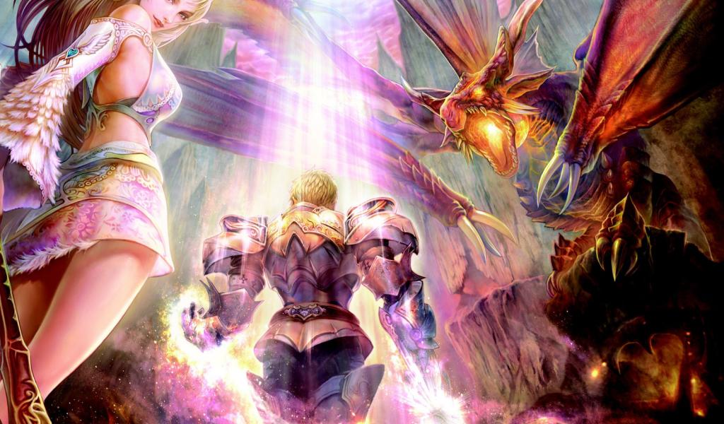 Обои Фея рыцарь и дракон