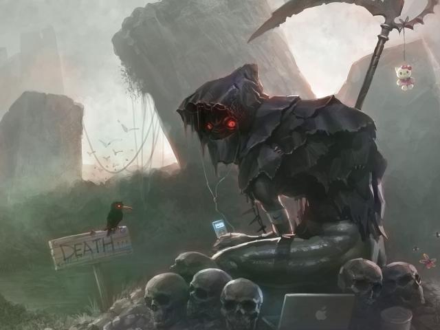 Обои Смерть с ноутбуком Apple