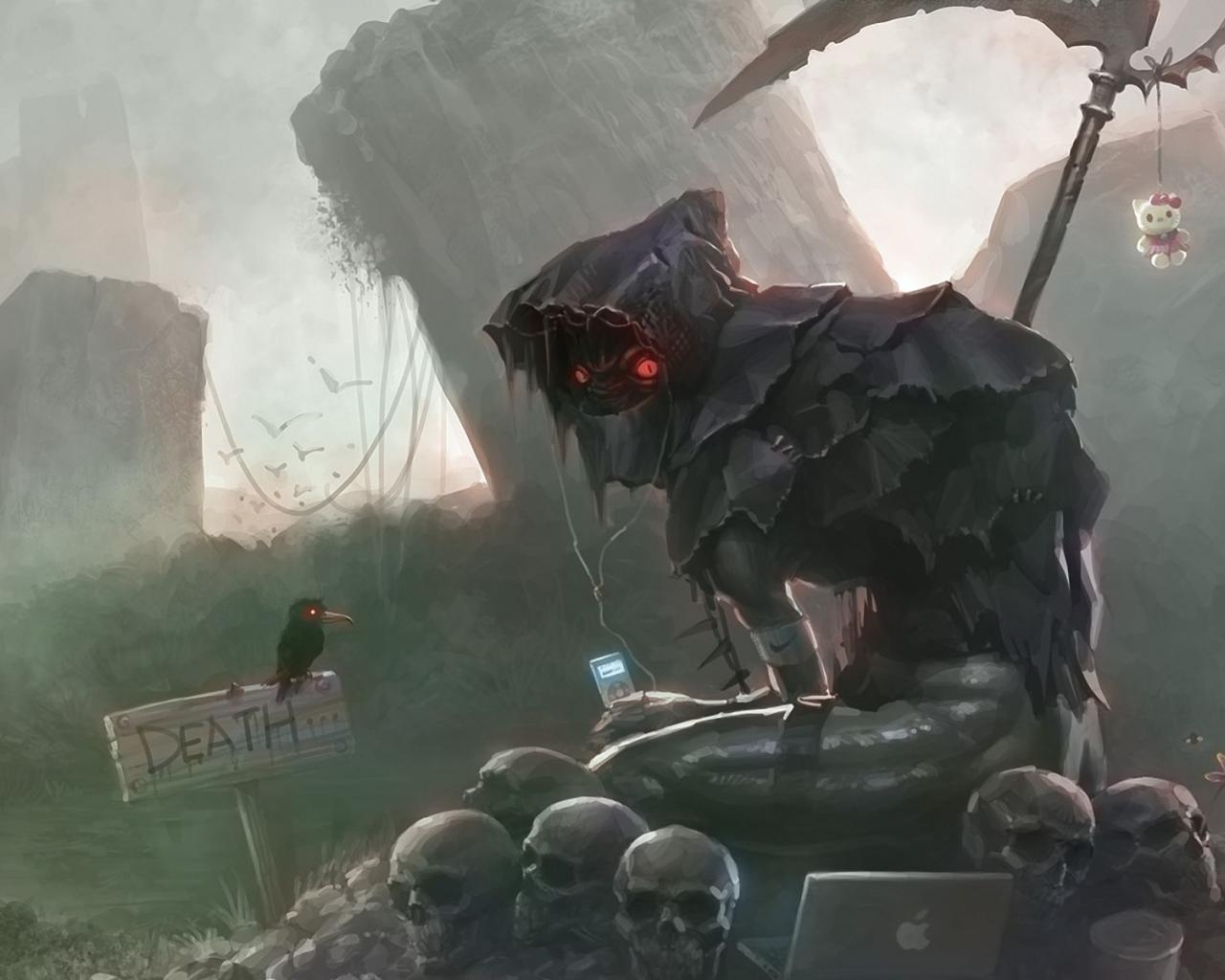 Обои Смерть с ноутбуком Apple