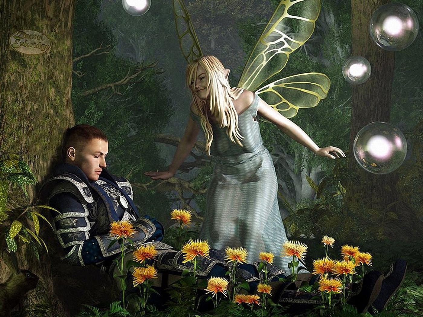 Обои Фея около спящего человека