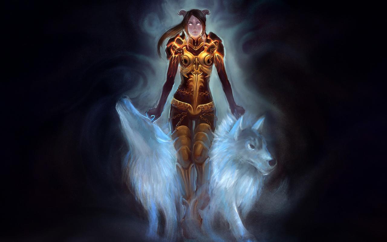 Обои Шаман и волк