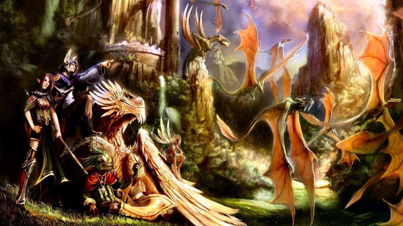 Обои Драконы и эльфы