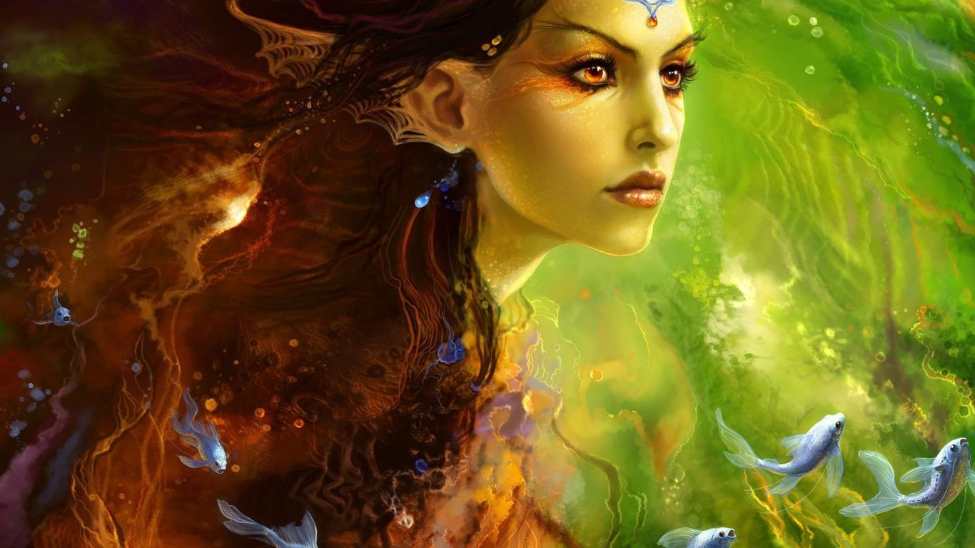 Обои Русалка с рыбами