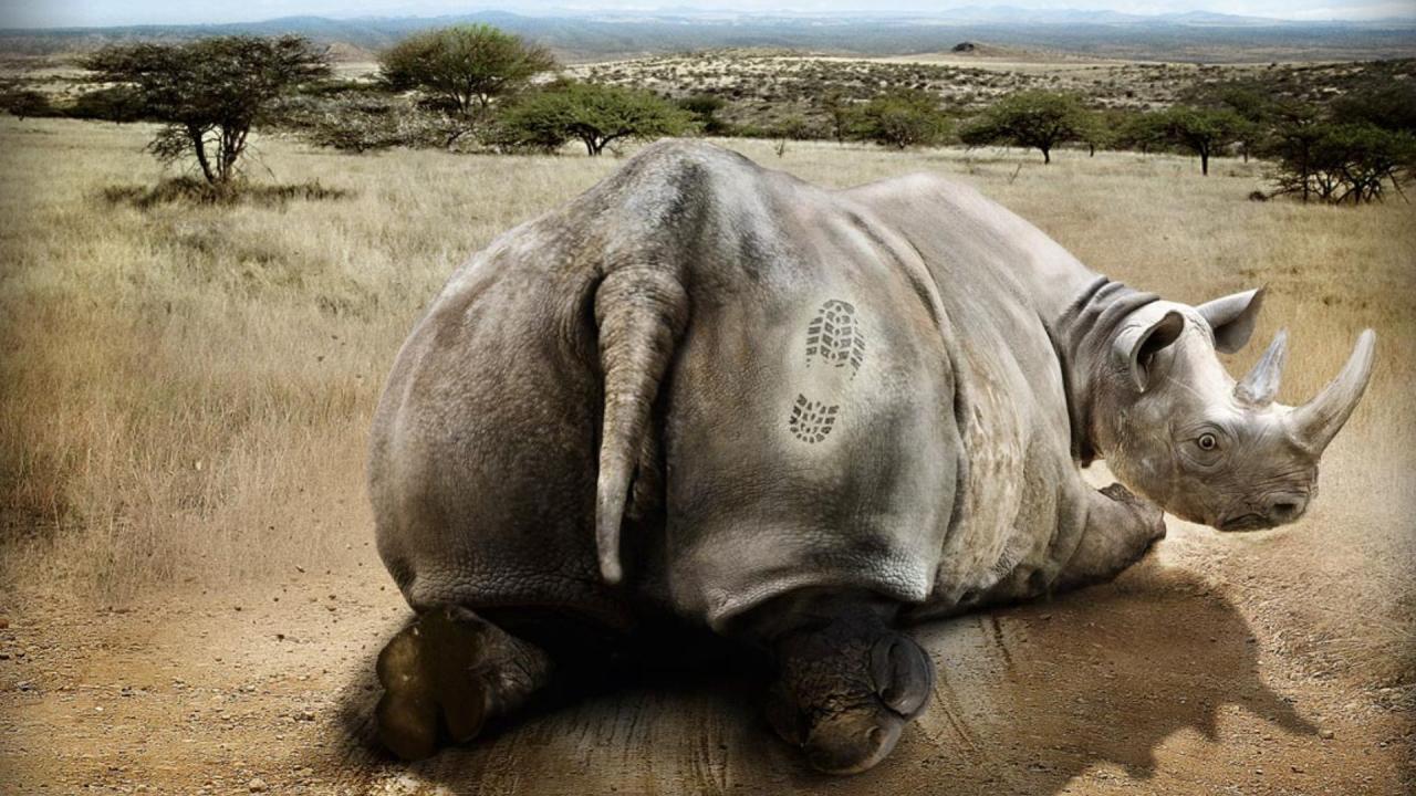 Обои Носорог получил пинка