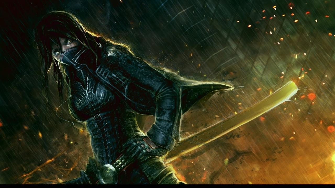 Обои Рисунок девушка с мечем
