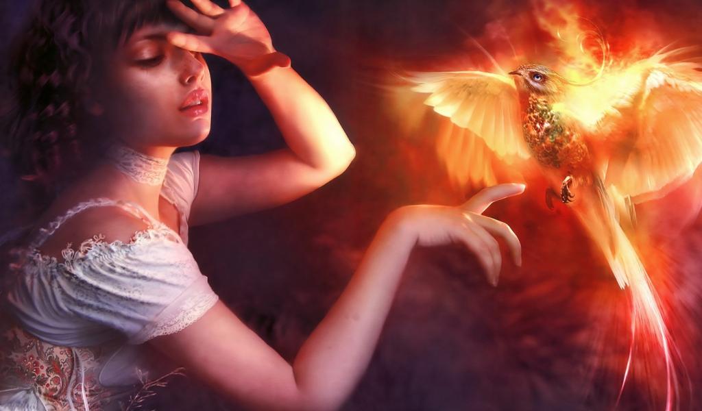 Обои Девушка с огненной птицей