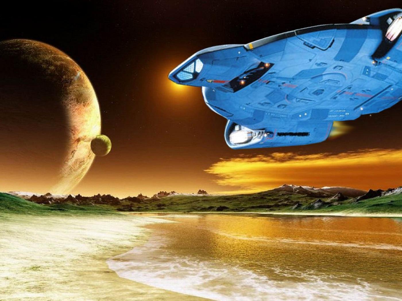 Обои Космический корабль садится на планету