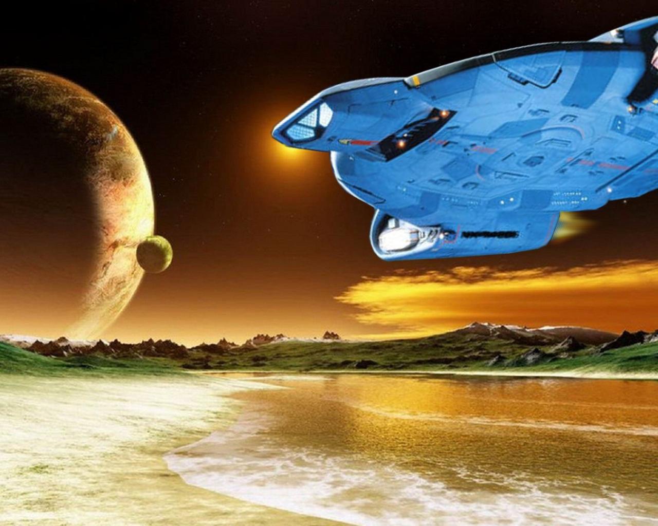 Обои Космический корабль садится на планету