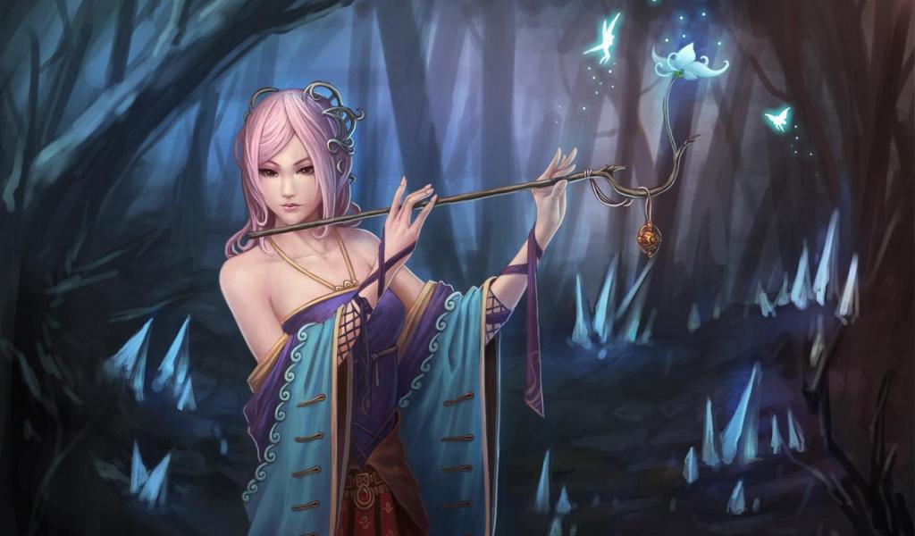 Обои Девушка аниме с волшебной палочкой