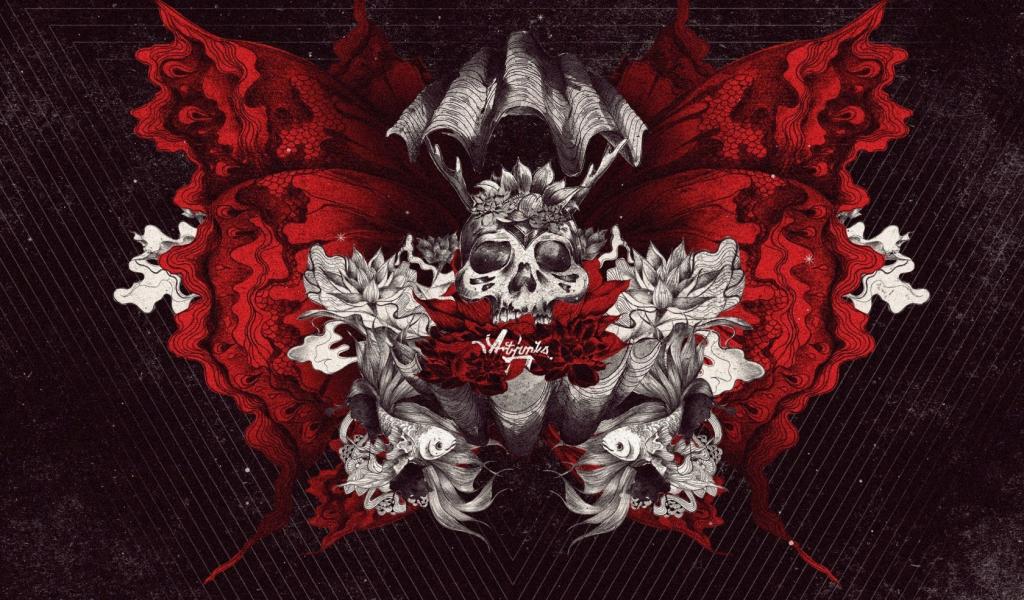 Обои Фантазия с рыбами и черепом