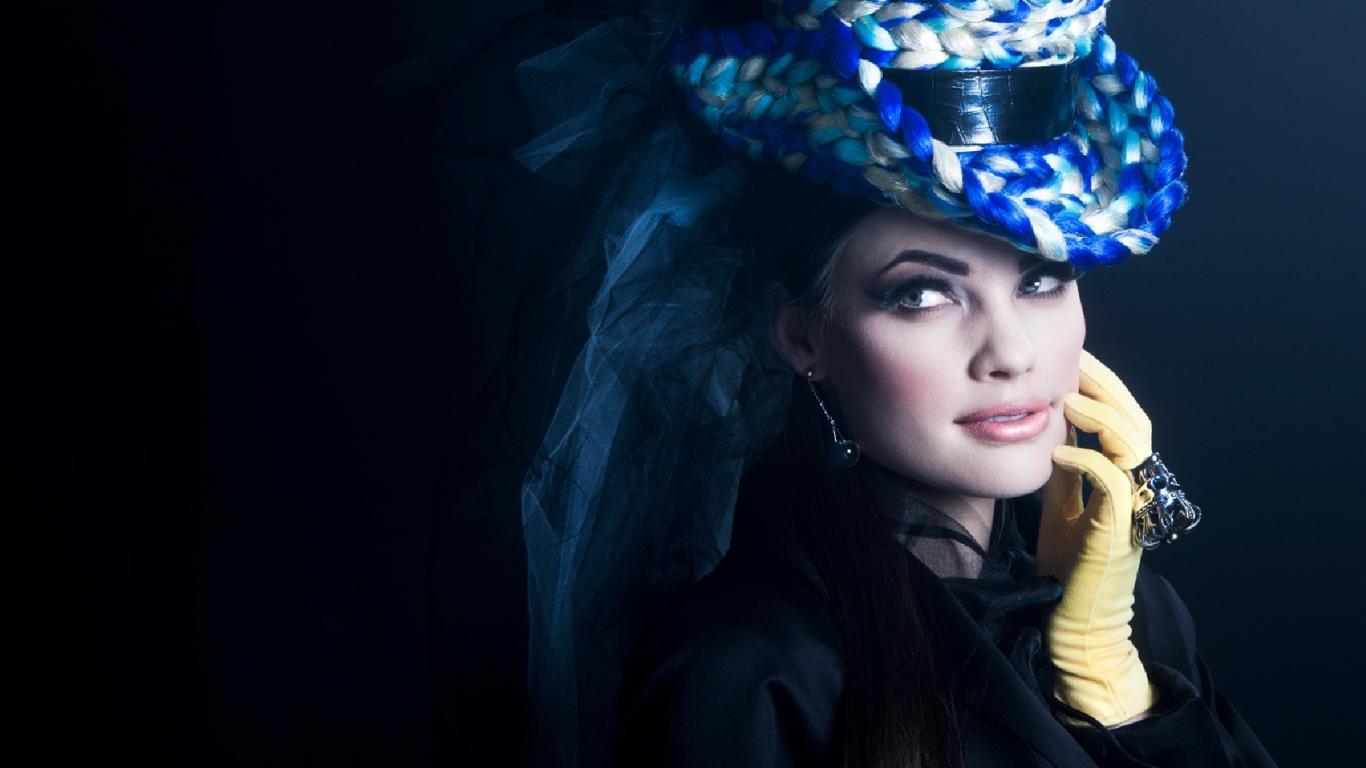 » Обои Девушка в синей шляпе
