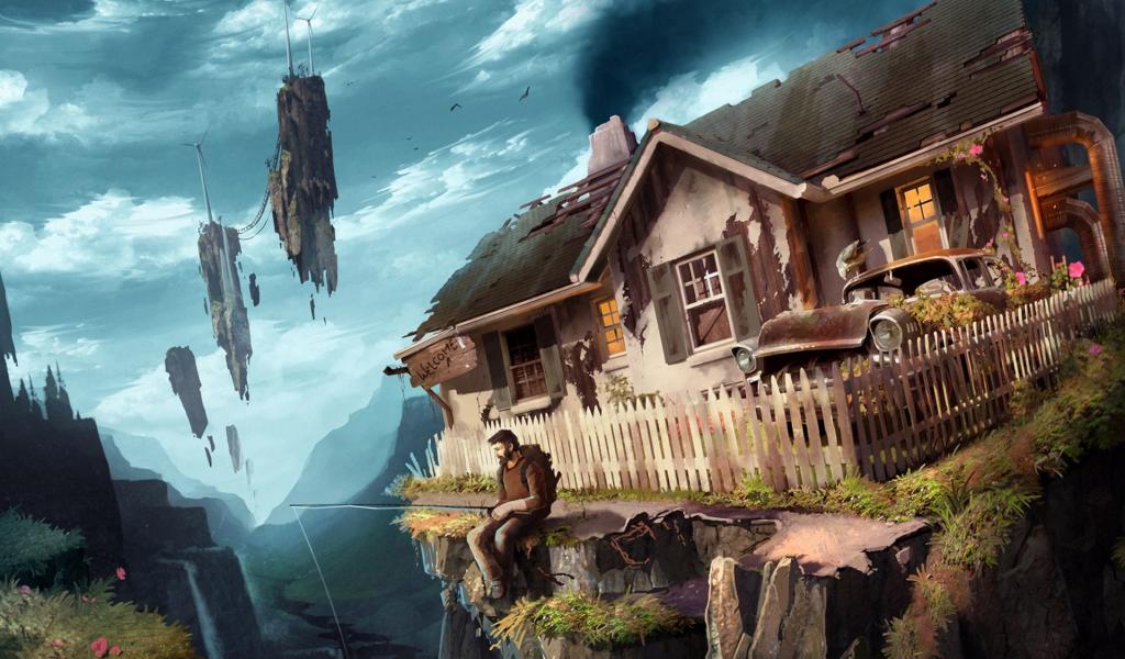 Обои Дым, Парень, Фантазия, Дом