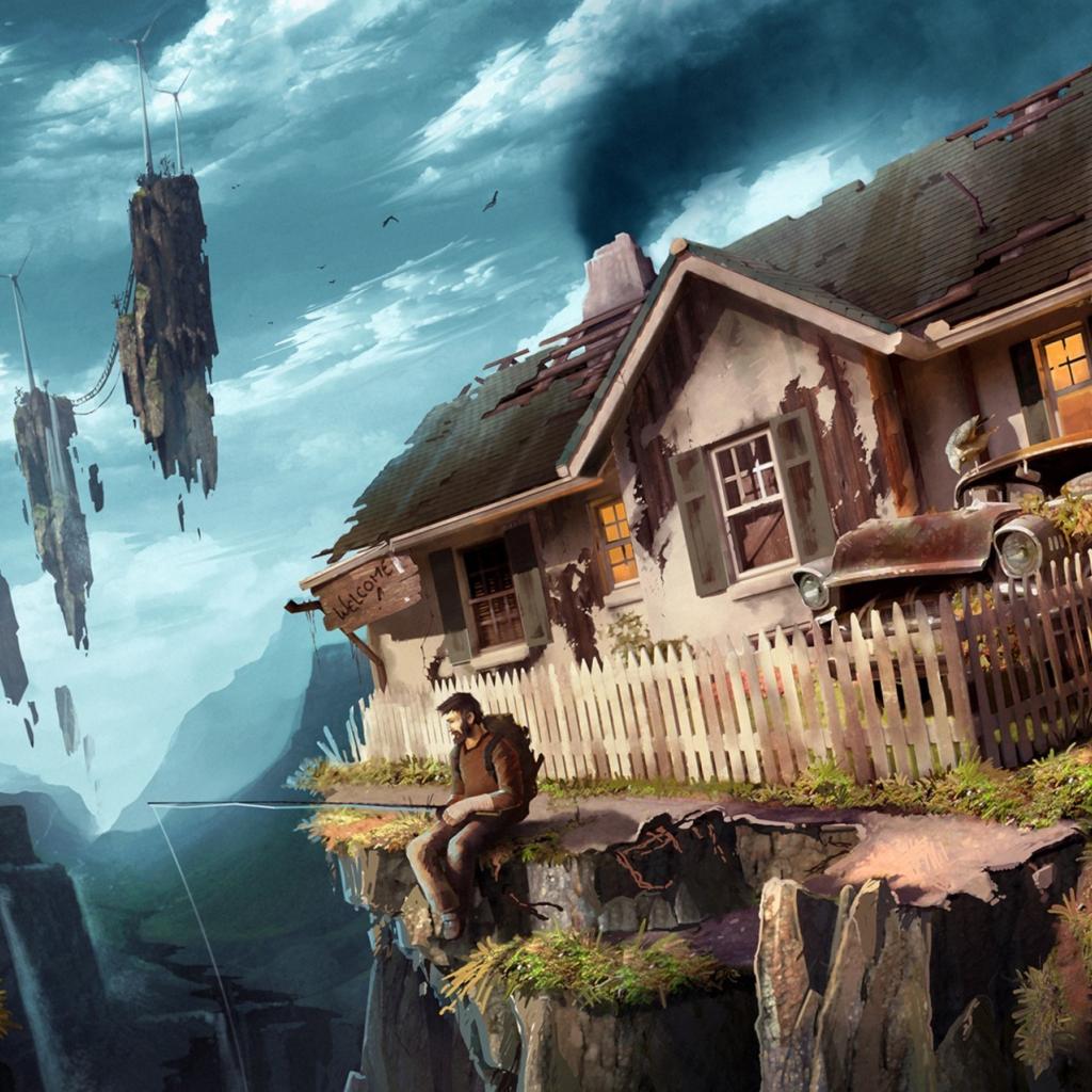 Обои Дым, Парень, Фантазия, Дом