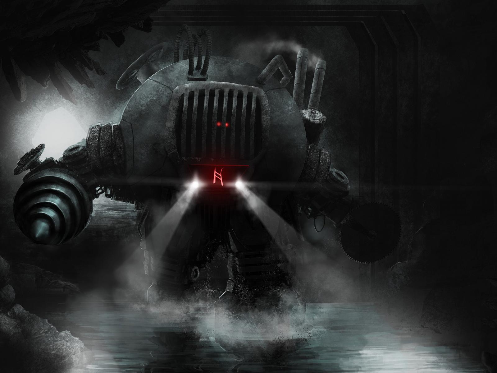 Обои Фантазия, Робот, пещера, Киберпанк