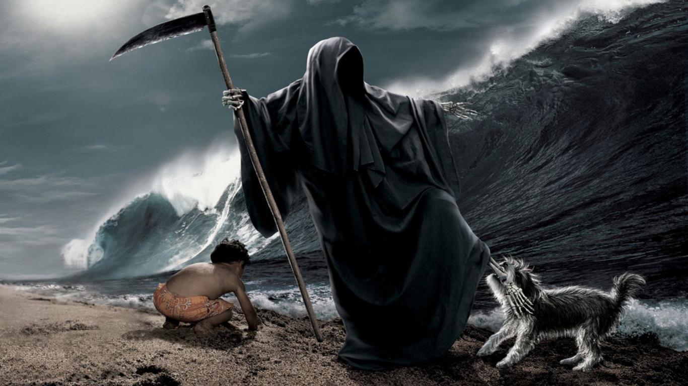 Обои Ребенок, Скелет, Волна, смерть