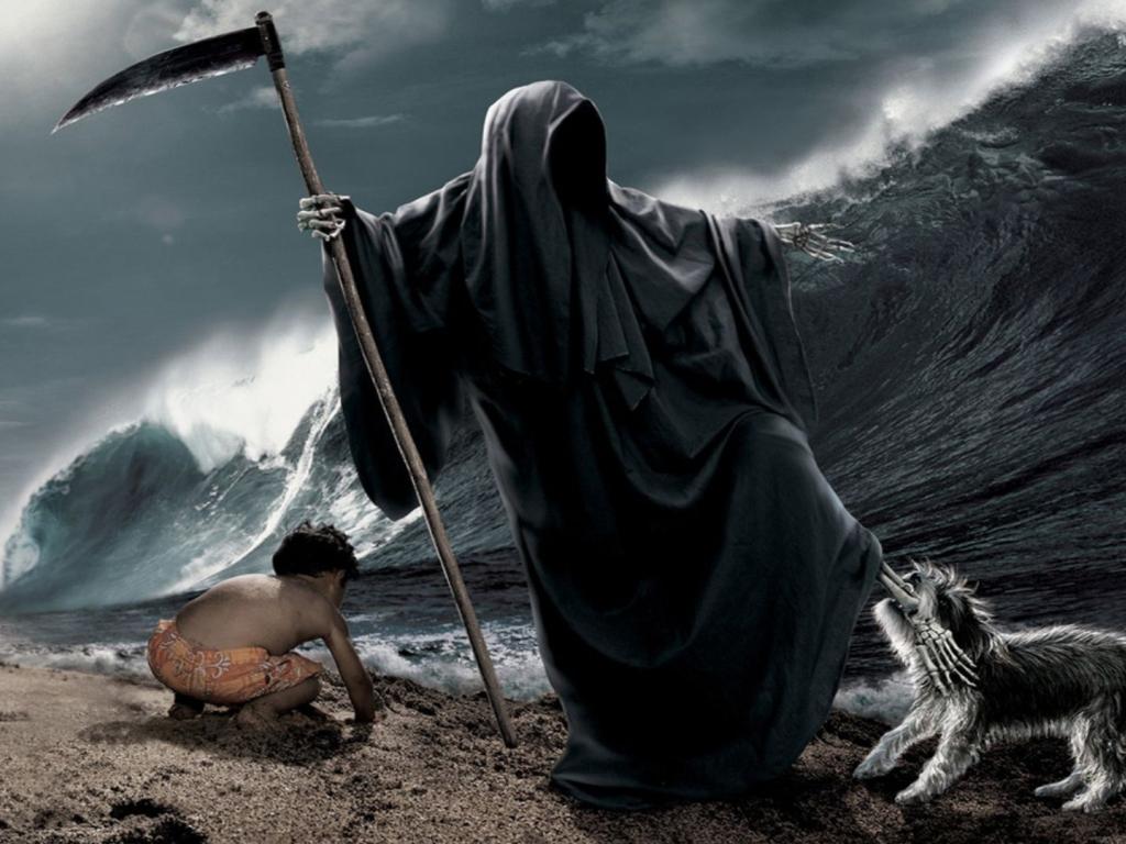 Обои Ребенок, Скелет, Волна, смерть