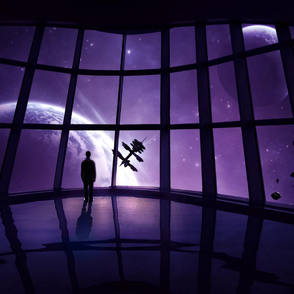 Обои Человек, космический корабль, окно