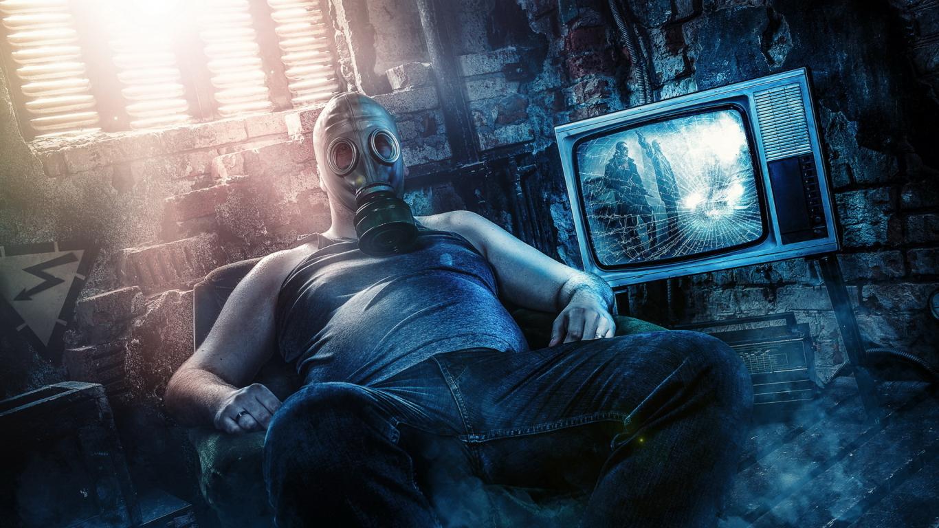 Обои Парень, Ретро, телевизор, сидит