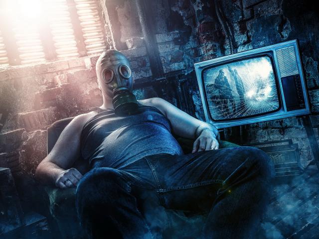 Обои Парень, Ретро, телевизор, сидит