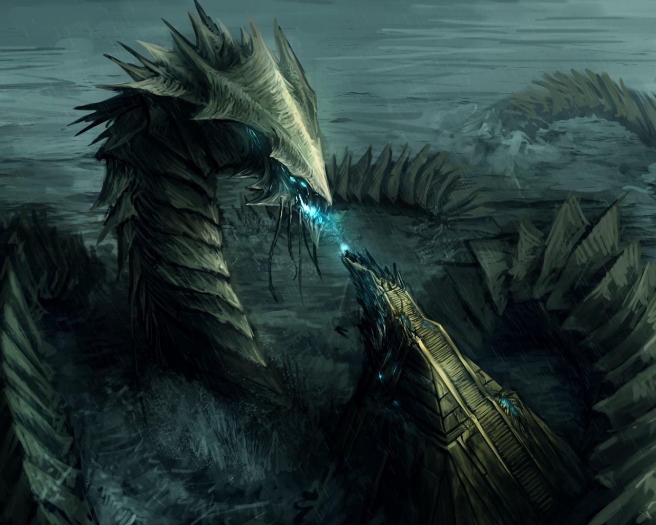 Обои Дождь, Голубые глаза, Вода, Дракон